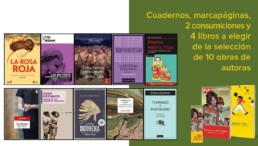 Llevamos dos semanas de campaña, estamos al borde del 8M y hemos decidido dar cabida a una nueva recompensa, compuesta por una selección de obras de autoras a las que tenemos especial cariño y respeto, publicadas todas ellas en editoriales que estarán presentes en la feria. Esta recompensa, acompañada por cuadernos y marcapáginas, ofrecerá 4 títulos entre la selección que aparece en la imagen.